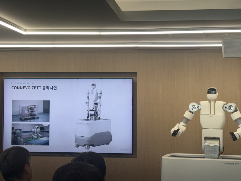 더 나아가 최초로 공개된 프로젝트 '제트(Zett)'는 의료 인력 부족 현상을 타개할 혁신적인 솔루션으로 평가받고 있다.곽호성 코넥티브 CTO(상무)는 "수술실에서는 의료진들이 무거운 물체를 들거나 질긴 피부를 30분씩 당기고 있어야 하는 등 단순하지만 고된 반복 작업이 많다"며 "제트는 한 팔당 10kg을 들 수 있는 고하중 기반의 23자유도 휴머노이드로,좁은 수술실 환경을 고려해 카트 형태로 완전 수납되어 10초 만에 전개되는 실용성을 갖췄다"고 설명했다.