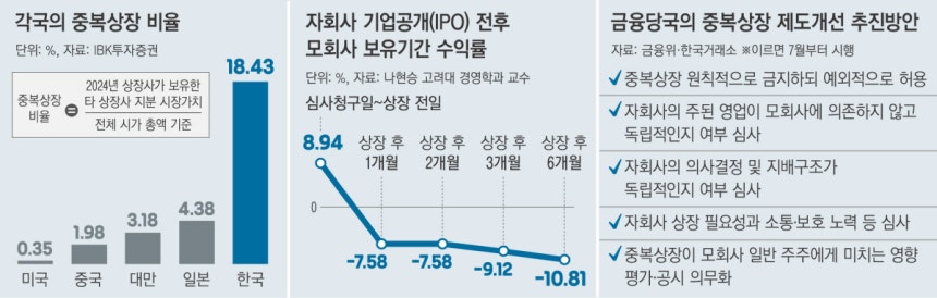 2024년 기준 IBK투자증권 보고서를 보면,한국의 중복상장 비율은 18.43%로 일본(4.38%),온라인경마시행대만(3.18%),미국(0.35%)보다 월등히 높았다.